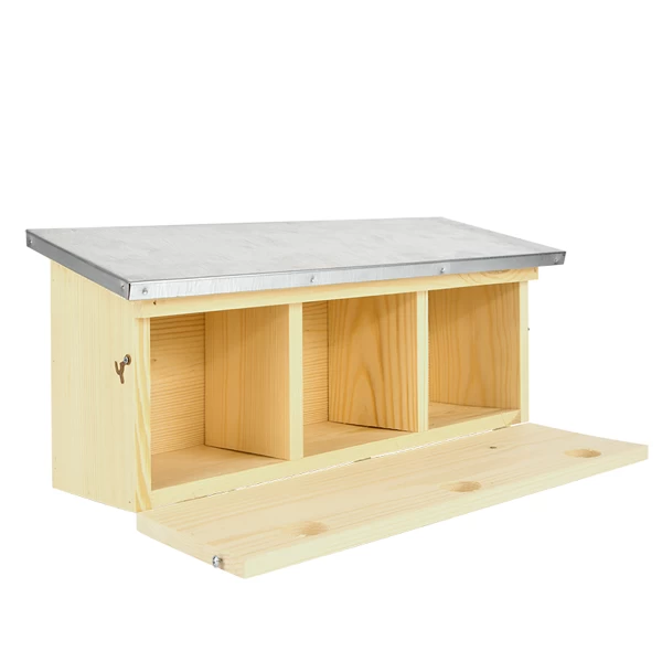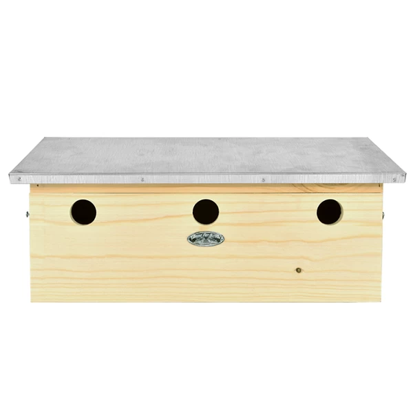 Deze mussenflat bestaat uit drie woningen die zich naast elkaar bevinden. Dit nestkastje met meerdere huisjes is bewust ontwikkeld voor de mus. Dit komt omdat mussen graag bij elkaar zitten. Behalve de huismus kun je in deze nestkast ook de ringmus, koolmees en pimpelmees verwachten. Hang de kast op een rustige, enigszins beschutte plaats op. In de winter doet het mussen vogelhuis vaak dienst als schuil- en slaapplek.