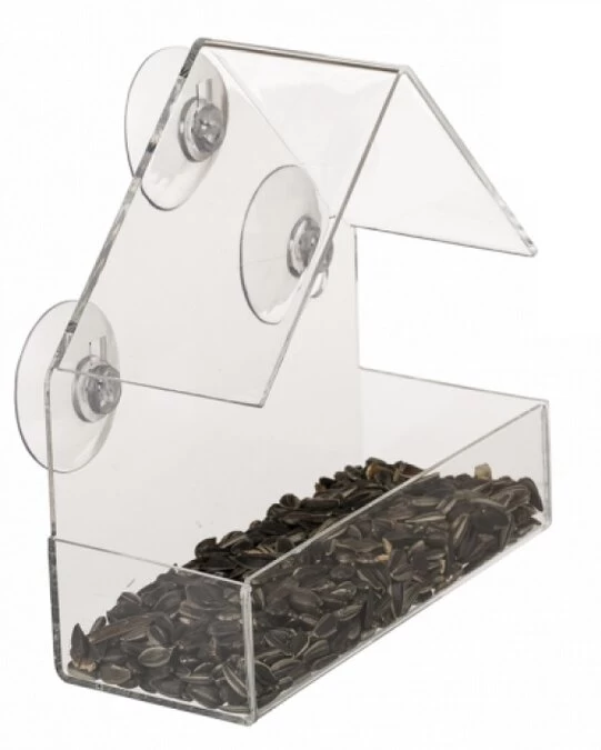 Met dit vogelvoederhuisje zijn het niet alleen de vogeltjes die genieten! Maar jij des te meer. Want vanuit je huiskamer of keuken kun je zo de vogels bij je raam zien eten. Het doorzichtige vogelhuisje is voorzien van zuignapjes waardoor je ‘m zo op je ramen plakt. Het schaaltje kun je vullen met vogelzaadjes of andere lekkernijen voor tuinvogels.