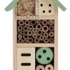 Het insectenhotel heeft verschillende secties waar allerlei natuurlijke materialen in verwerkt zitten, elke sectie is geschikt voor een ander insect. Je kunt het hotel het beste ophangen in de buurt van bloemrijke planten, struiken en bomen.