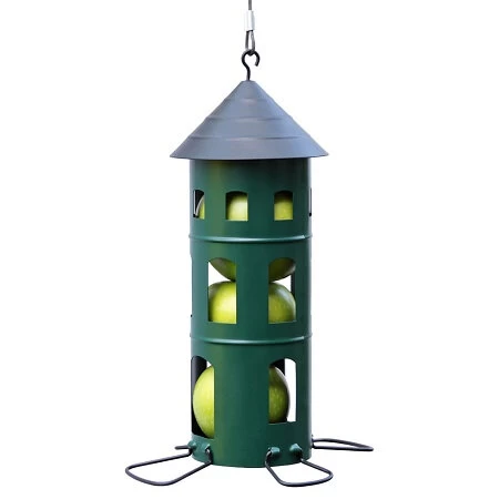 Dit voederhuis heeft een bijzonder voersysteem voor vogels waardoor de silo niet alleen met kleinvoer zoals nootjes, pinda’s en vogelzaad kan worden gevuld, maar ook met fruit of vetbollen. De vogelsilo is voorzien van hanger waardoor je deze eenvoudig in een boom, aan een boomtak of haak kunt hangen.