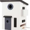 Een vakwerkhuisje als vogelvoederhuis en als vogelnestkastje, dat is dit prachtige ontwerp van het Zweedse merk Wildlifegarden. Het vogelhuisje is geheel handgemaakt met duurzaam hout en is daarna handgeverfd met milieu vriendelijke verf dat is opgewassen tegen verschillende weersinvloeden. Om het huisje om te bouwen als voederhuisje dient u de bodemplaat te verwijderen. Nu kunt u het voer reservoir vullen met vogelvoer. Sluit ook de ronde opening af en monteer de stokjes aan het huisje zodat de vogels naast het huisje op de stokjes kunnen landen. In het voorjaar kunt u hetzelfde huisje gebruiken als nestkastje voor de koolmees, de ringmus, pimpelmeesjes en winterkoninkjes. Het Wildlife Garden vogelhuis is geheel van FSC hout gemaakt. U kunt het huis tegen een muur, schutting of boom hangen. Maar ook in combinatie met een paal vrijstaand plaatsen. De Zweedse nestkastjes zijn ontwikkeld met de focus op de uiteindelijke bewoners: de kleine tuinvogels.